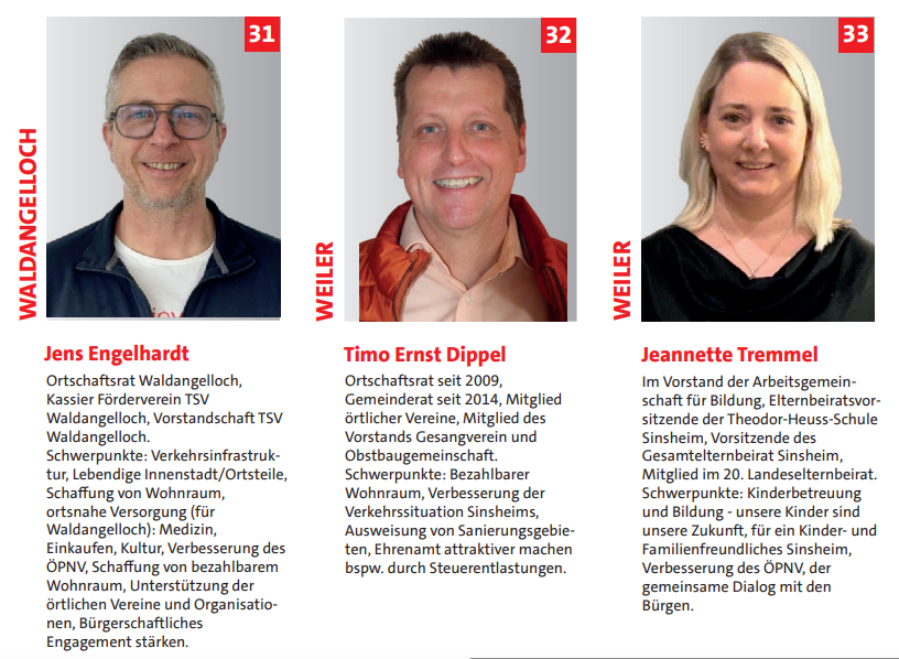 Unsere Kandidaten und ihr Programm für Sinsheim