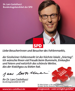 Nähere Informationen im Wahlkreisbüro Wiesloch, Tel. 06222 9399506 oder Email lars.castellucci.ma01@bundestag.de