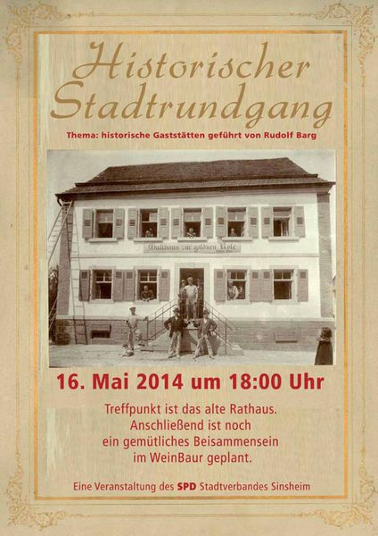 Mittwoch, 11.11.15, 18.00 Uhr, Weinstube Baur, Hauptstr., Sinsheim nächster öffentlicher Stammtisch des SPD-Stadtverbandes Sinsheim