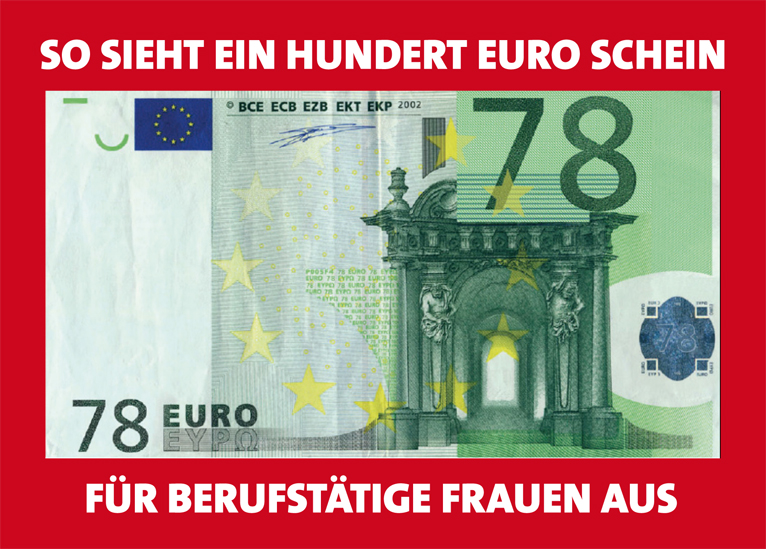 Wir treten ein für die Rechte der Frauen, deren Einkommen immer noch im Durchschnitt unter 22 % weniger als ihrer männlichen Kollegen liegen. Wo also Männer 100 Euro verdienen, erhalten Frauen nur 78 Euro.