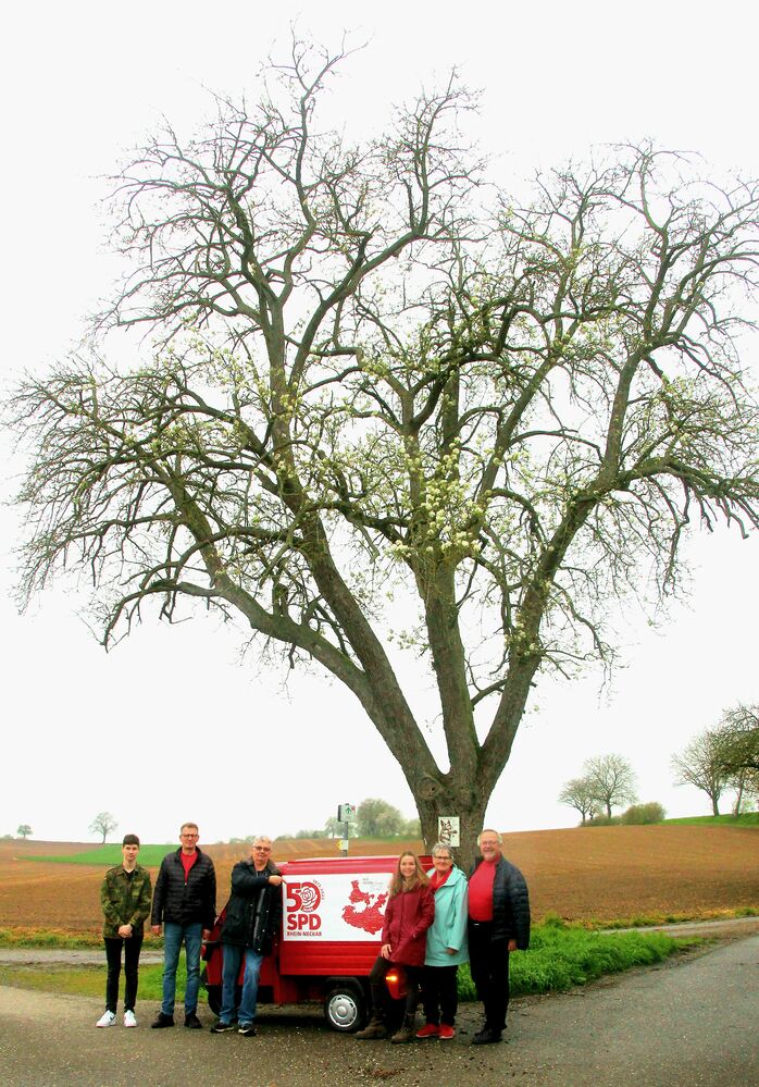 Auch das hier ist ein Prachtexemplar von Baum. Die Besatzung der SPD-Ape entdeckte es am Tag des Baumes auf Steinsfurter Gemarkung.