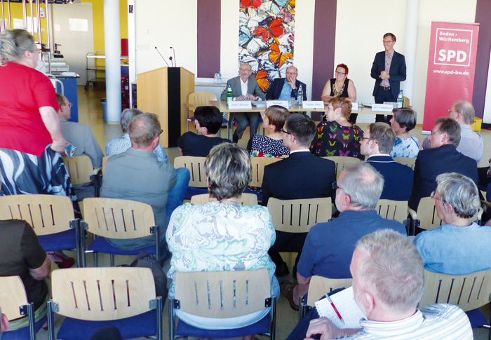 Gute Pflege muss ermöglicht und wertgeschätzt werden – menschlich und finanziell. Dies war das Fazit der Podiumsdiskussion zum Thema „Pflegepolitik der großen Koalition“ am Dienstag, den 15. Juli 2014. Elke Ferner, Staatssekretärin im Familienministerium, war auf Einladung von SPD-Bundestagsabgeordneten Lars Castellucci und dem Bündnis für gute Pflege ins Sinsheimer Kreiskrankenhaus gekommen. Gemeinsam mit Herbert Weisbrod-Frey von der Gewerkschaft ver.di und Stefan Pfeil vom Sozialverband VdK stellte sie sich auf dem Podium den kritischen Fragen der rund 60 interessierten Besucher. In einem Punkt waren sich Publikum und Podiumsgäste allerdings von Beginn an einig: Es besteht dringender Handlungsbedarf. Die Besucher, von denen viele selbst in der Pflege tätig sind, berichteten von überlasteten Pflegekräften, Unterfinanzierung und der Schwierigkeit, motivierten Nachwuchs für die Arbeit in der Pflege zu gewinnen.