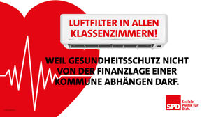 Wenn Luftfilter im Land 270 Millionen Euro für Schulen und Kitas kosten, die Landesregierung aber nur 60 Millionen bezuschusst, werden Städte und Dörfer enorm belastet. Viele Kommunen können sich das schlicht nicht leisten. Gesundheitsschutz darf aber keine Frage der Finanzstärke einer Kommune sein. „60 Millionen Euro reichen in einer Zeit, in der den Kommunen ohnehin das Geld fehlt, nicht aus. Wieder laufen wir Gefahr, dass Schülerinnen und Schüler in finanzschwächeren Kommunen benachteiligt werden“, so der SPD-Landesvorsitzende Andreas Stoch.